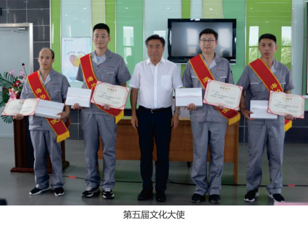 海為文化大使是海為文化的傳承人與踐行者。自2012年以來(lái),公司已舉辦8屆文化大使評(píng)選,并有29名員工榮獲海為文化大使稱(chēng)號(hào)。身體力行,責(zé)任在心,一張張閃耀的聘書(shū)與勛章是卓越的象征,他們雖在不同崗位卻有著同樣的擔(dān)當(dāng)與職責(zé)。他們是企業(yè)的代言人與文化傳播者,同時(shí)也是企業(yè)文化的傳承人。